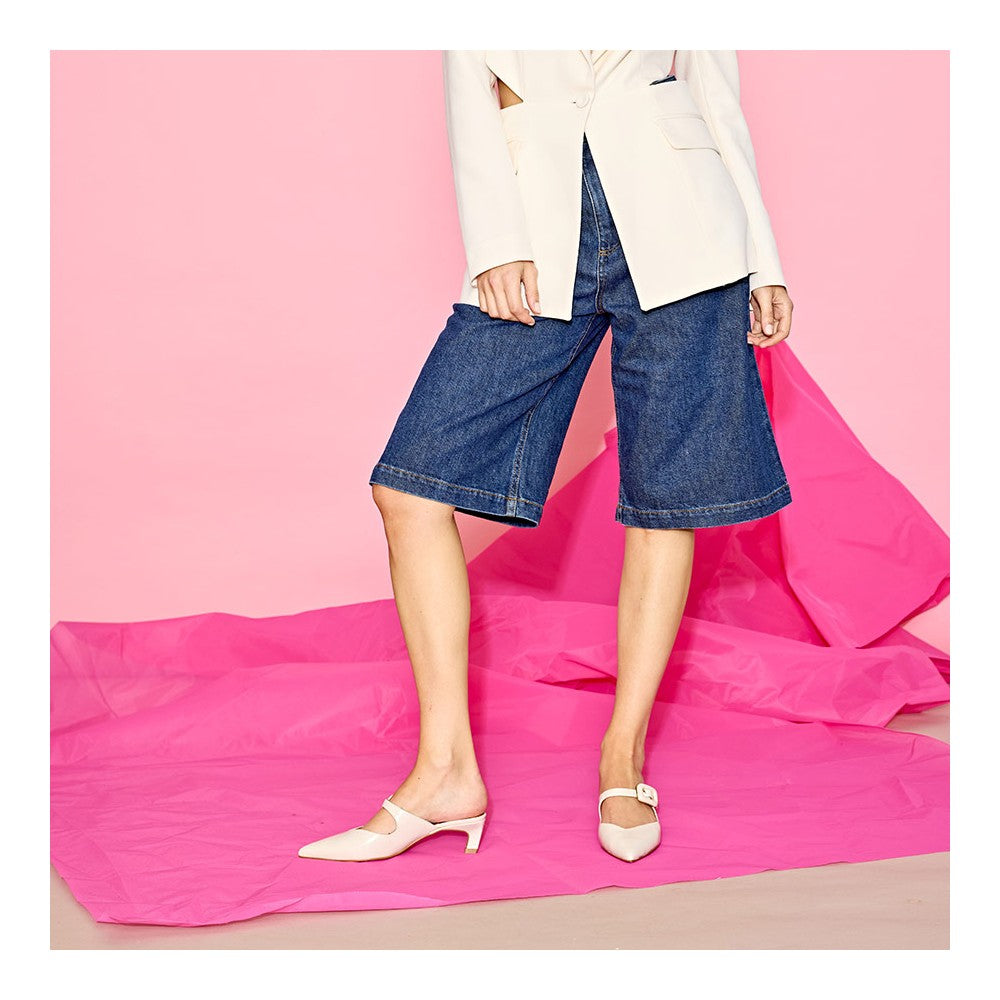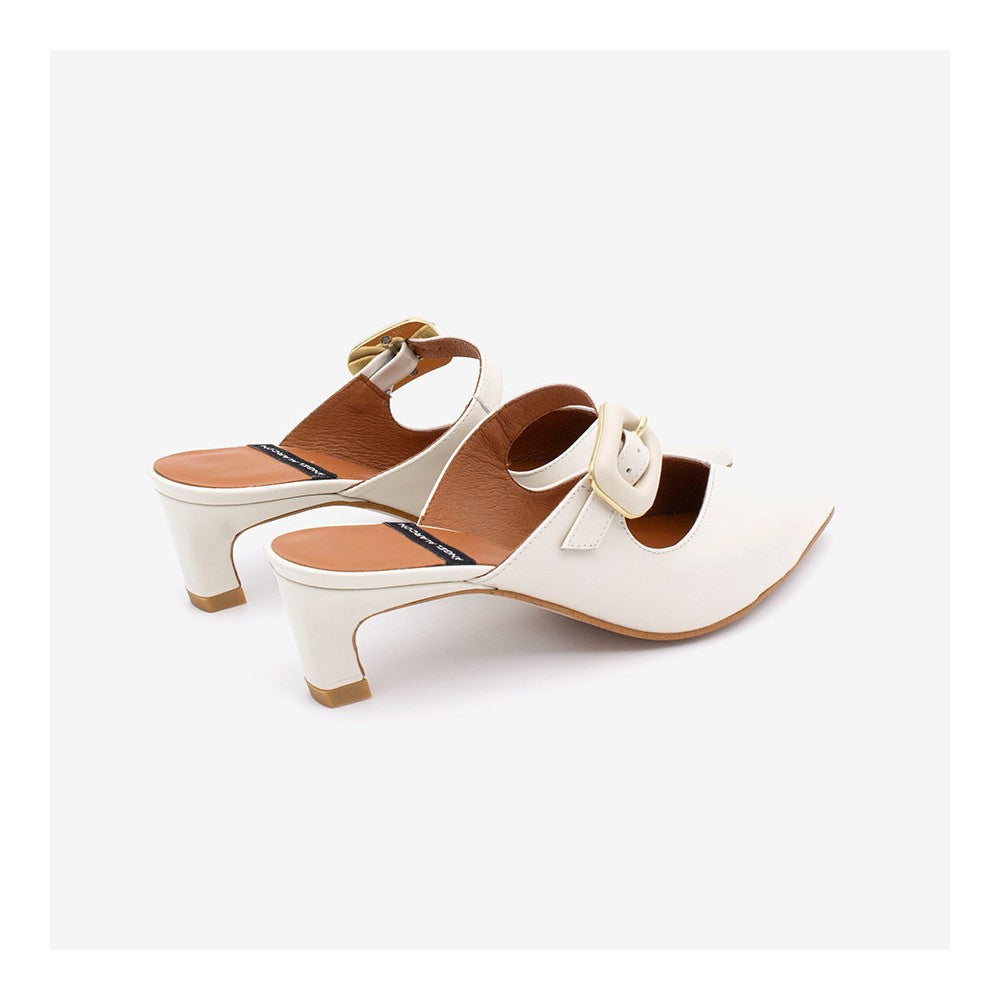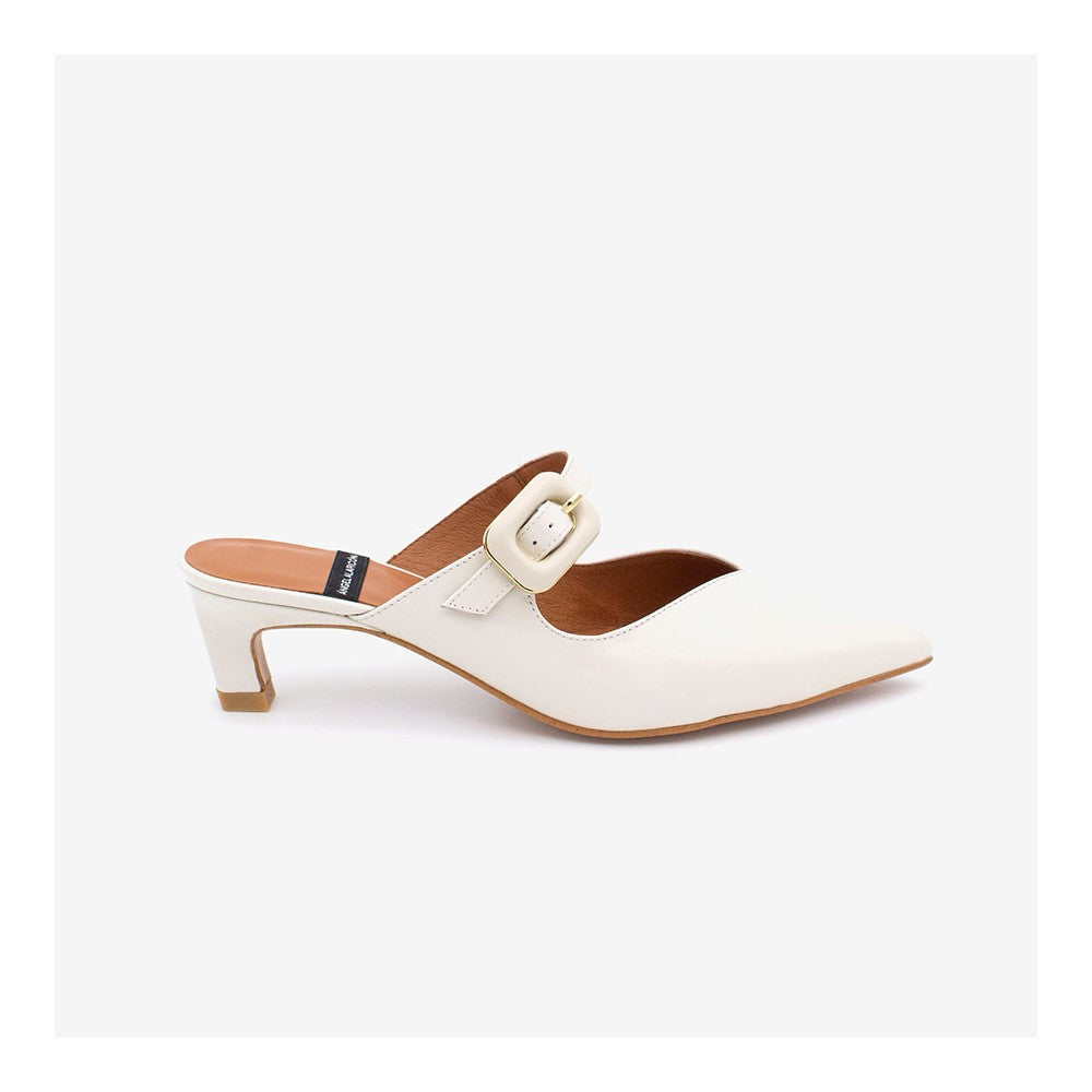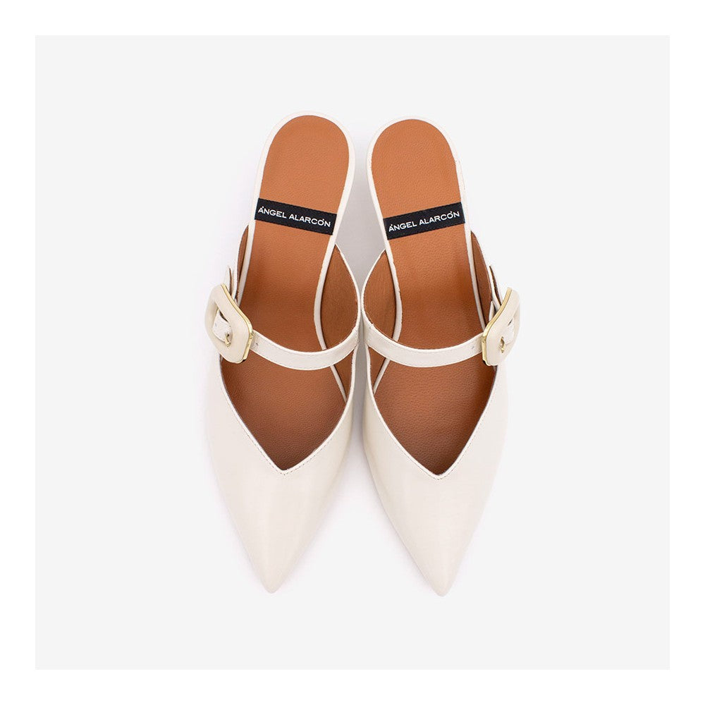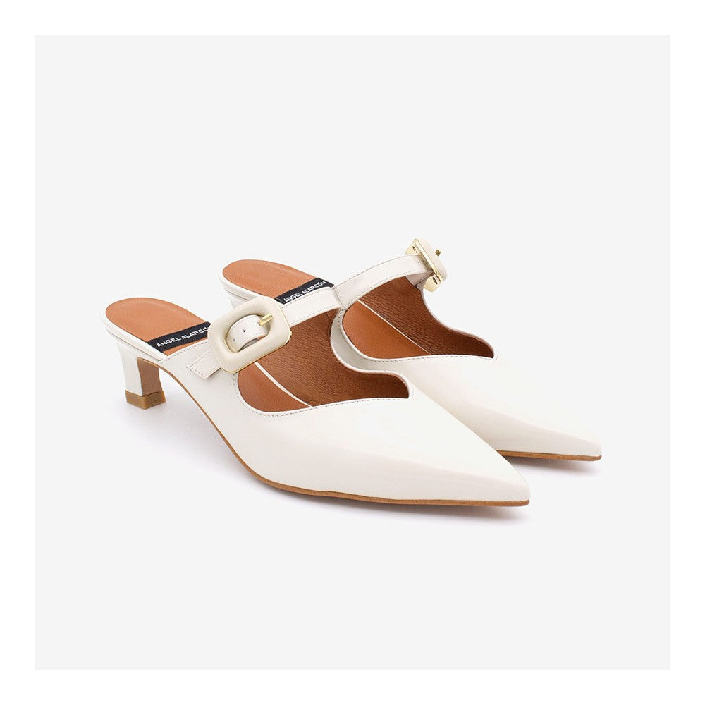 Slip-on sandals crafted from beautiful, glossy leather with a sleek pointy closed toe. Designed with an adjustable top strap for a secure, customized fit, they offer an elegant look while remaining easy and comfortable to wear.