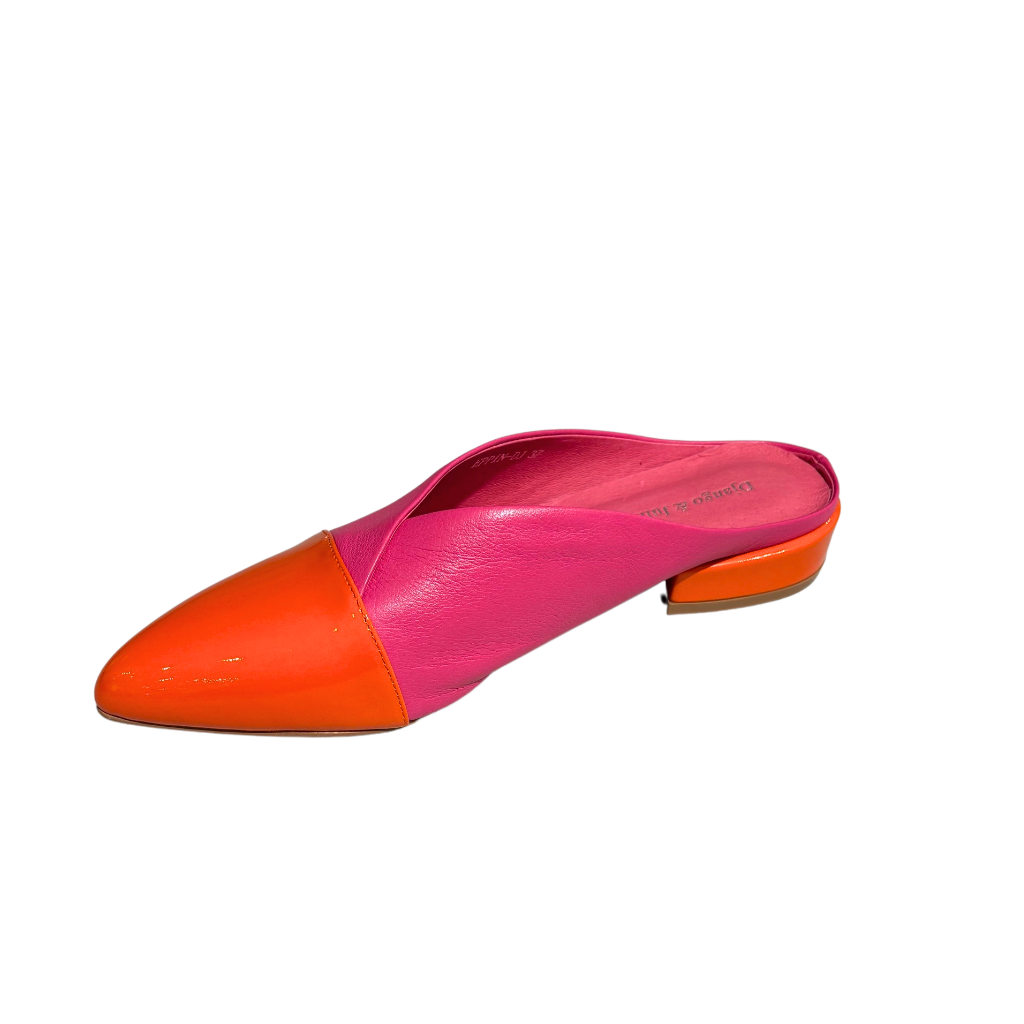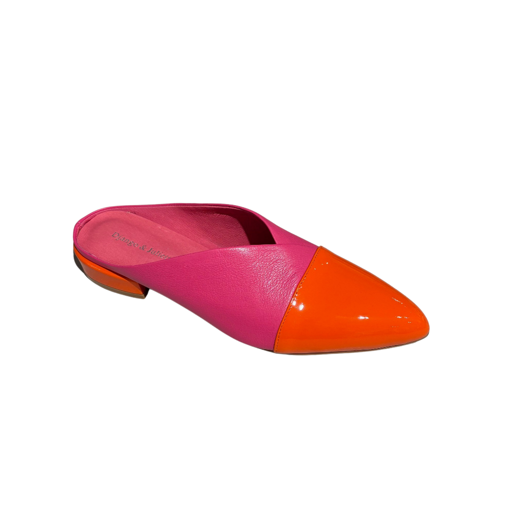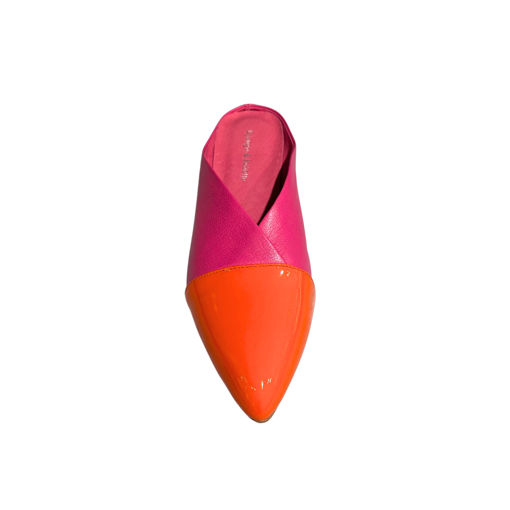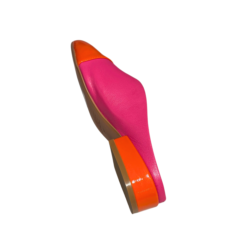 A playful slide finished in a bold mix of fuchsia and orange patent leather, bringing instant personality to your look. The high-shine colors create a fabulous pop that elevates even the simplest outfit, making these slides an easy statement piece you’ll reach for again and again.