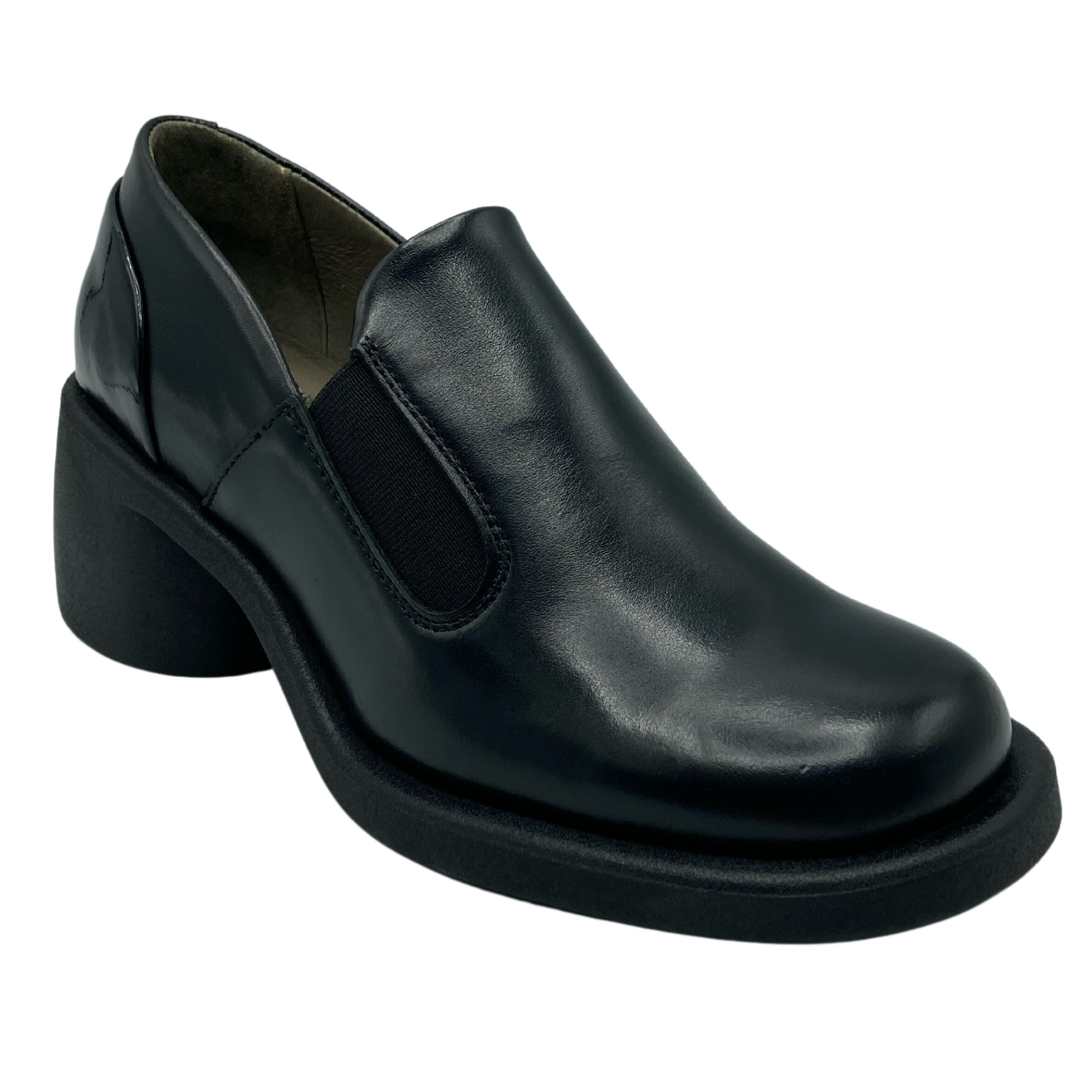 Luxuriate in classic, contemporary style with the Fly London Huch. Crafted of fine black leather, this chic chunky loafer features elastic side gore for a custom fit, while its 2 1/2" heel and 1" platform provide a comfortable lift. A removable, cushioned insole with arch support adds extra cushioning. Experience the sophisticated elegance of the Huch.
