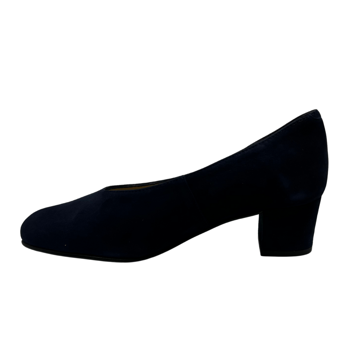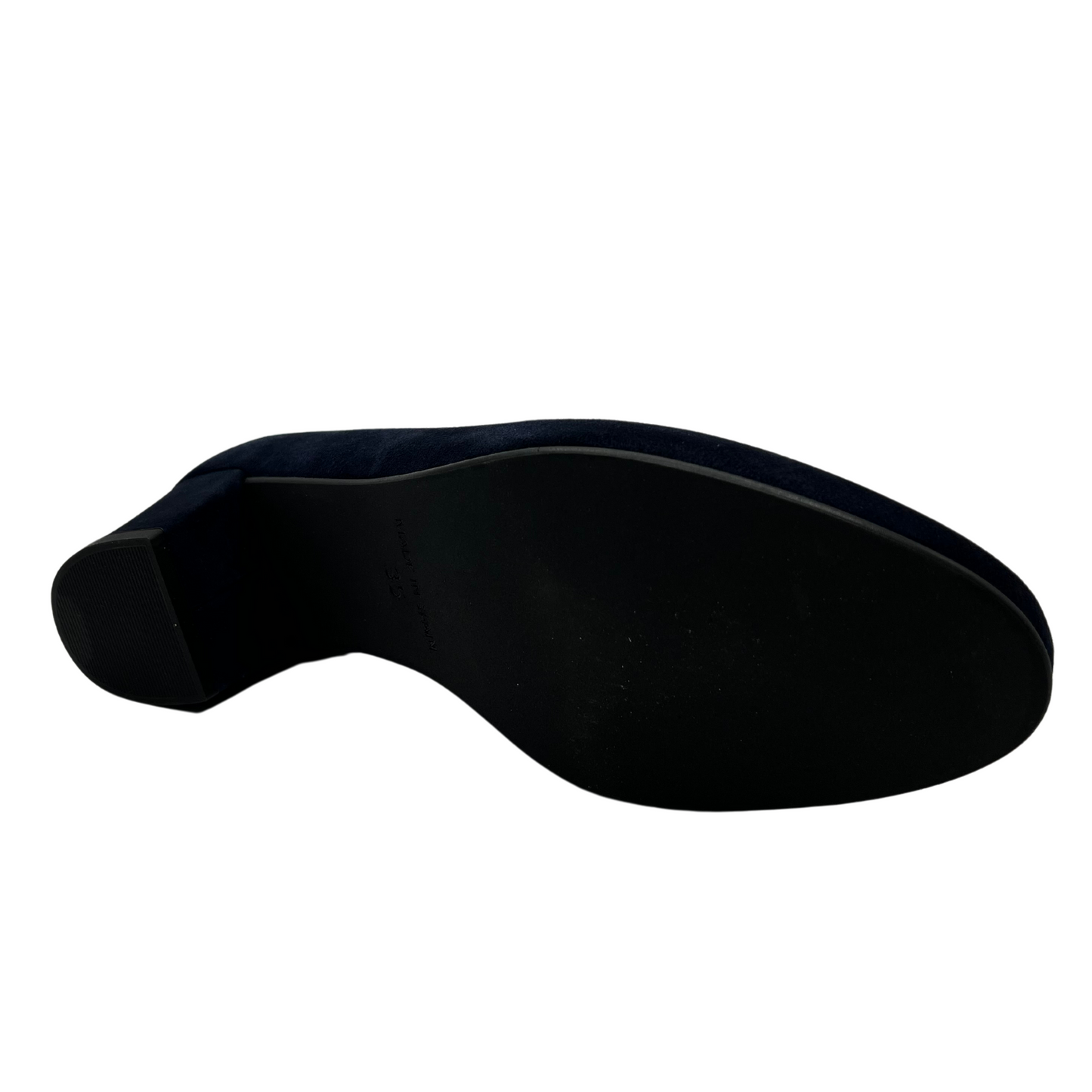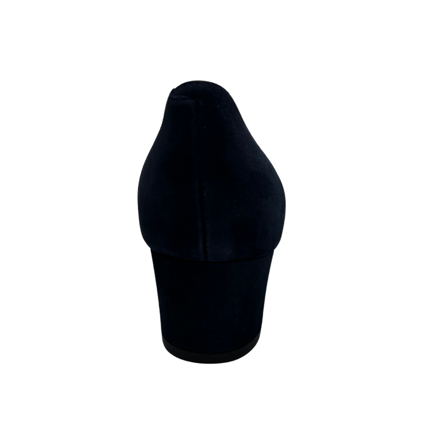 The Follie Ante is a timeless navy suede pump with a low block heel and rounded toe. Made from high-quality materials, it offers both style and comfort for any occasion. The sleek design and sturdy construction make it a versatile addition to any wardrobe, perfect for achieving a polished and classic look.
