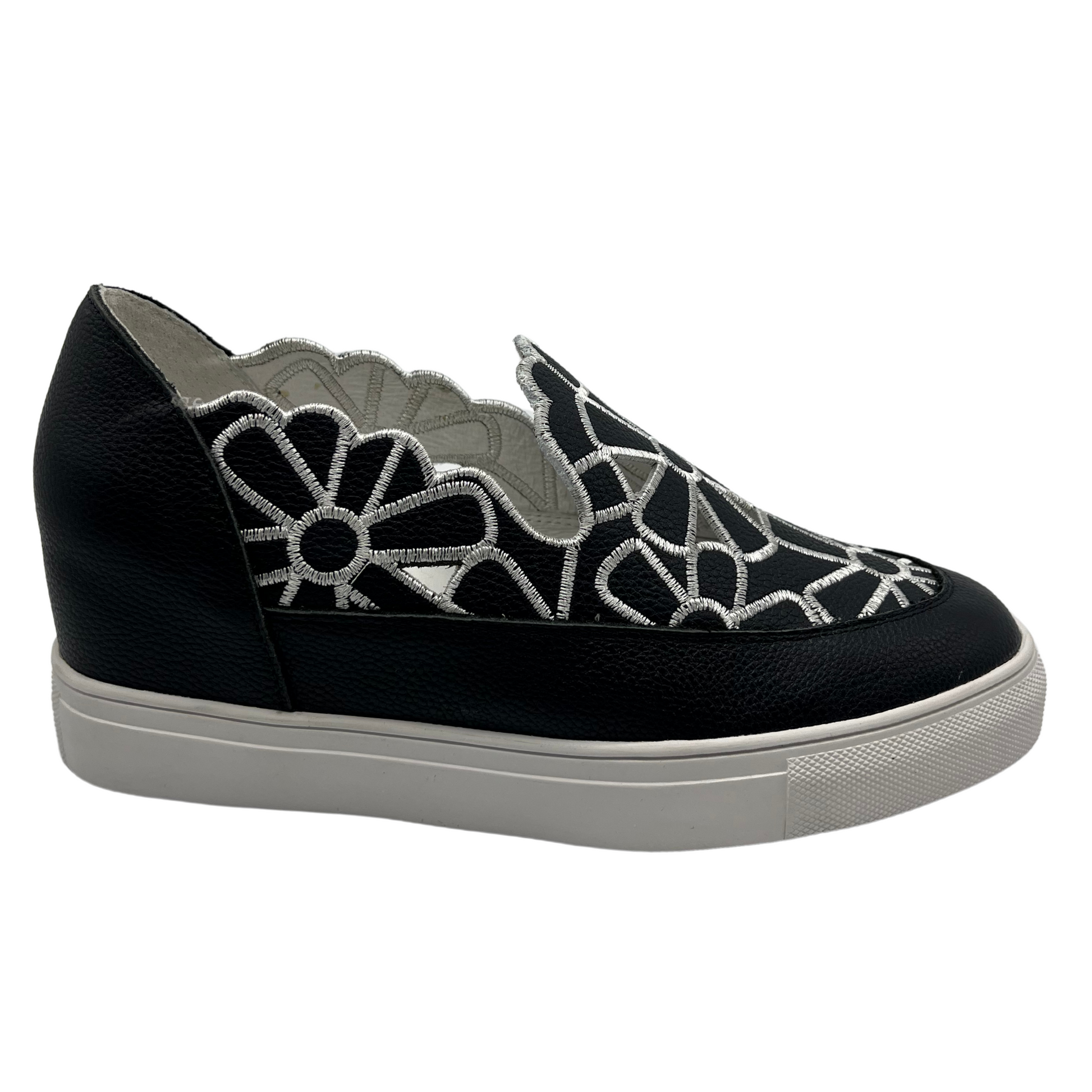 Elevate your style with the Minx Flower Wedge. This playful wedge features a unique flower embroidered cut out pattern on the leather upper, adding a fun touch to your outfit. With a 5cm hidden heel and comfy leather lining, it's the perfect blend of style and comfort.