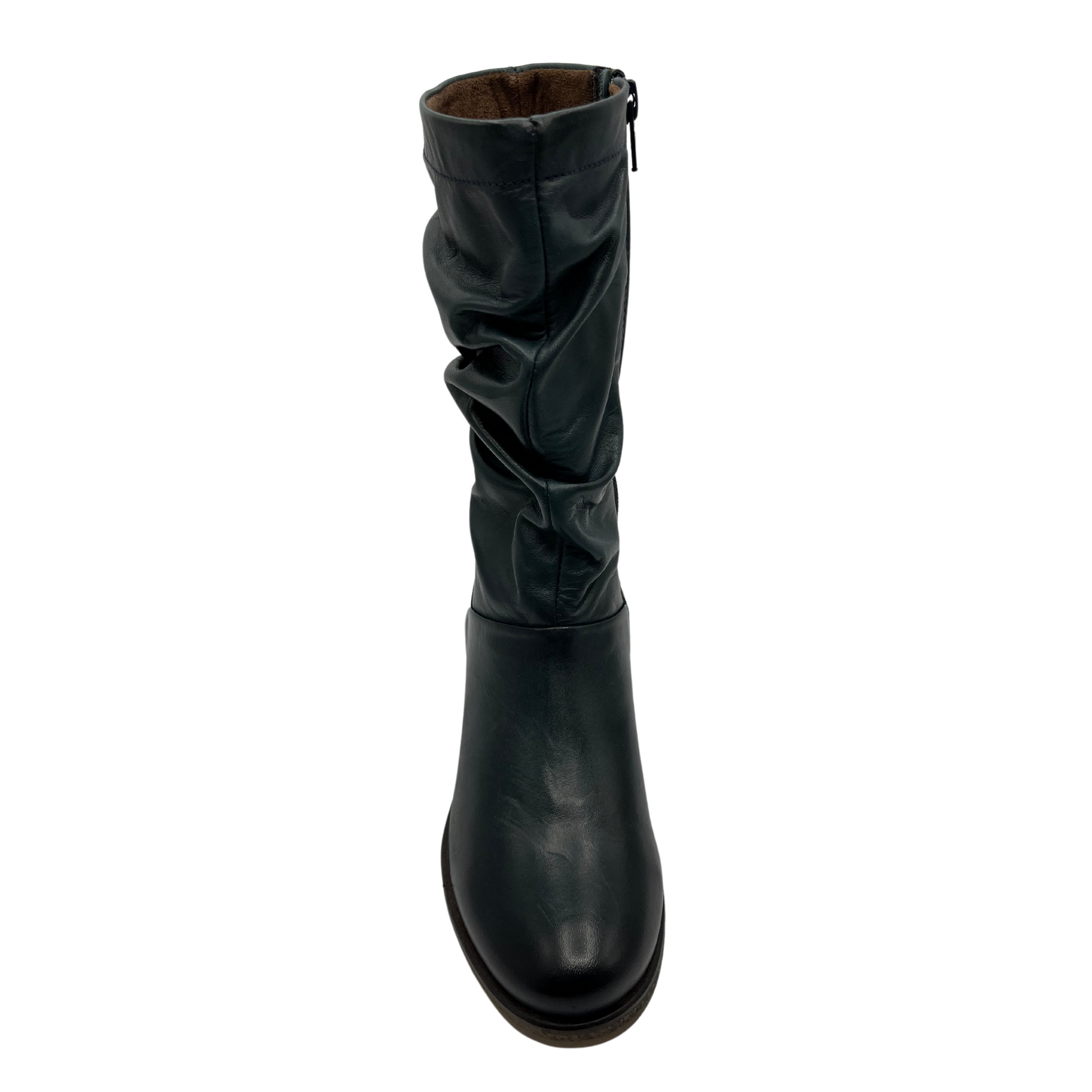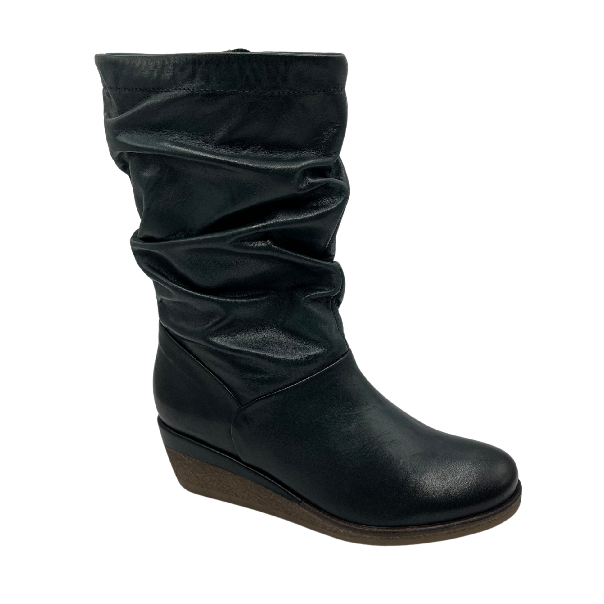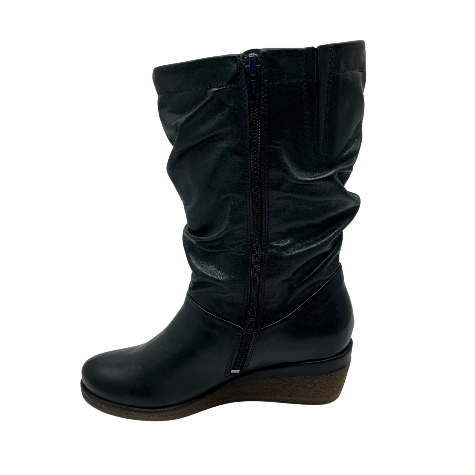 Take a leap into style with Miz Mooz Martina soft leather mid-calf boots. The slouchy relaxed design exudes confidence while the low wedge heel adds a daring edge. Zip up on the side and embrace your adventurous side with every step. Perfect for those who love taking risks!