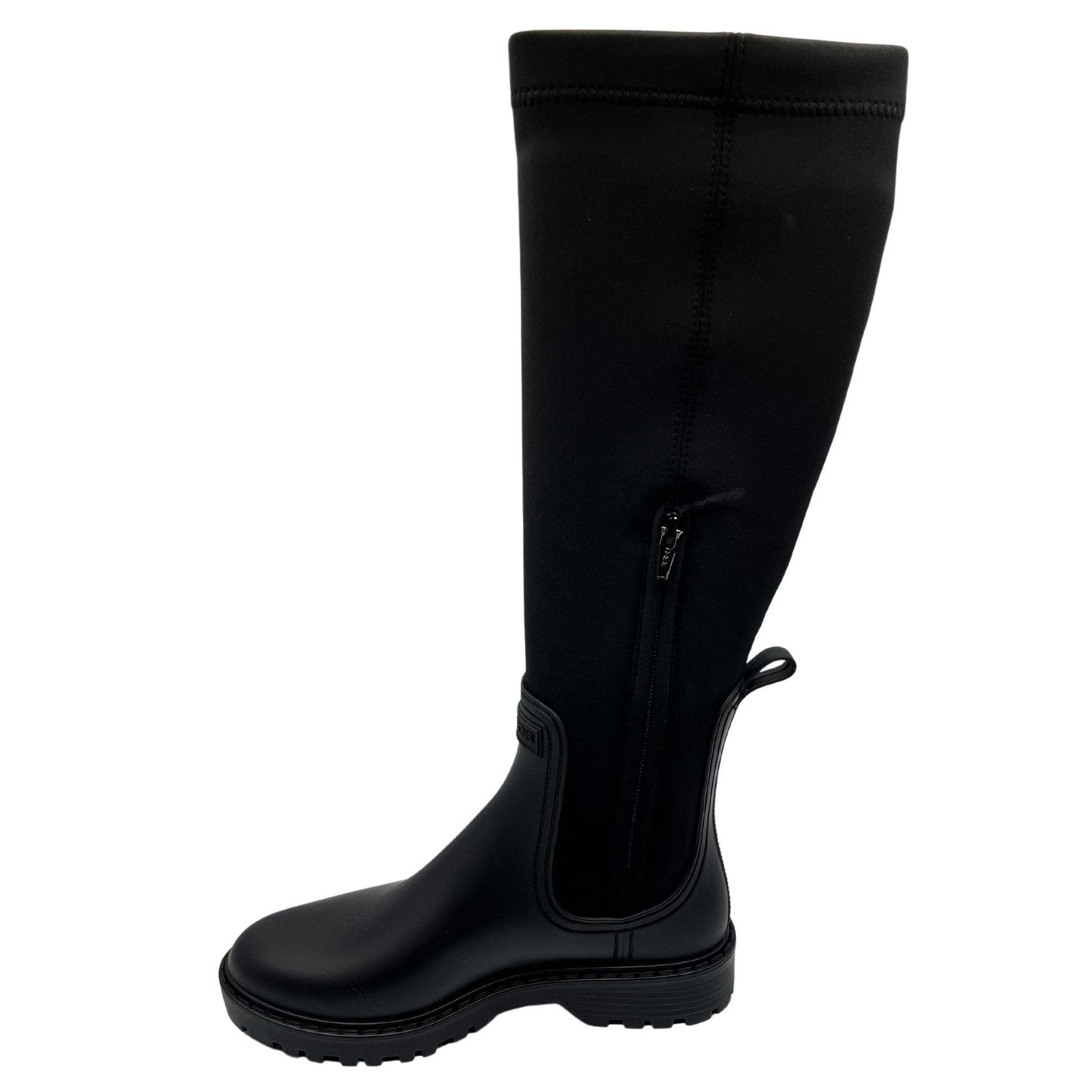 Stay dry in style with the Toni Pons Cardiff. This waterproof tall boot combines a rubbery outside and stretchy lycra shaft, making it a perfect accessory for a rainy day. The non-slip rubber sole and lined inner sole keep your feet comfortable no matter what the weather. No more puddles here - just fashionable fun!